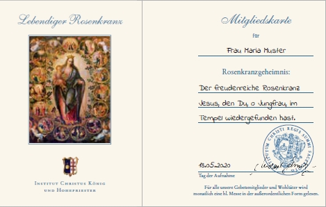 Nach der Anmeldung bekommen Sie Ihr Rosenkranzgeheimnis auf einer